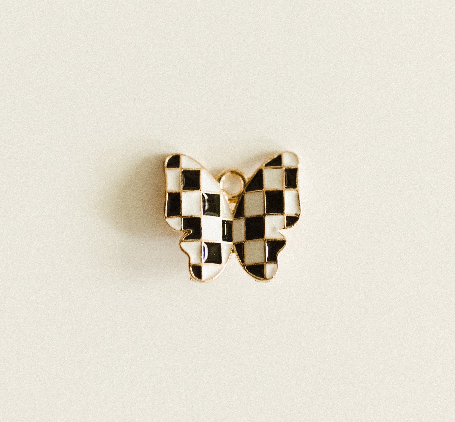 Gold black & white checkered butterfly