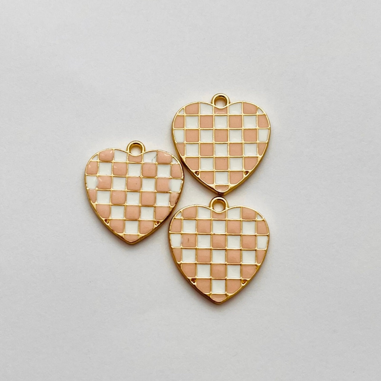 Gold light pink & white small checkers heart