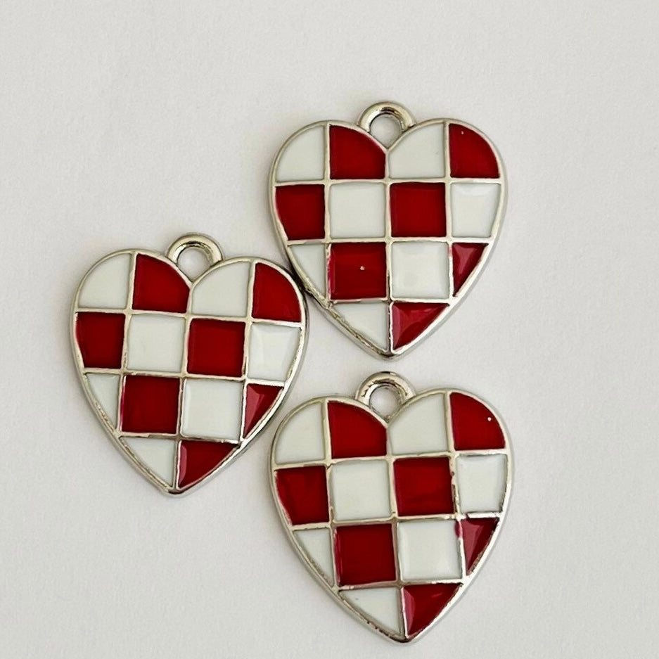 Silver red & white checkered heart
